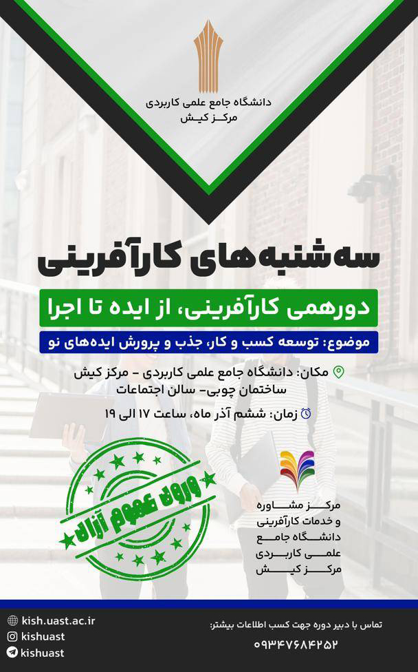 دانشگاه جامع علمی کاربردی مرکز کیش برگزار می کند: