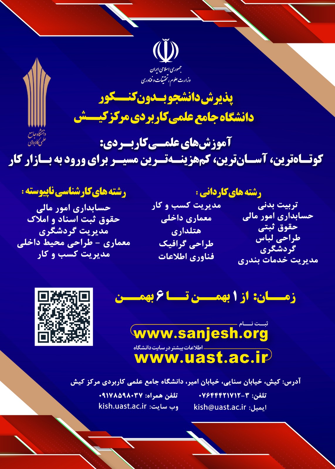 پذیرش دانشجو بدون کنکور ورودی بهمن ۱۴۰۳ در مرکز کیش