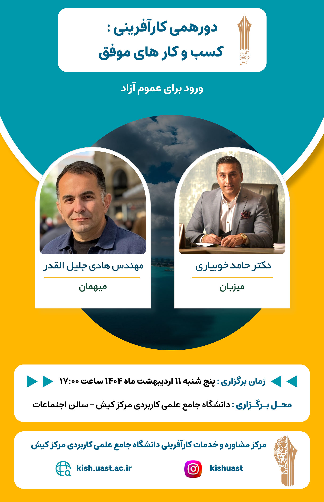 اطلاع رسانی برگزاری دورهمی کارآفرینی با موضوع کسب و کارهای موفق در مرکز کیش