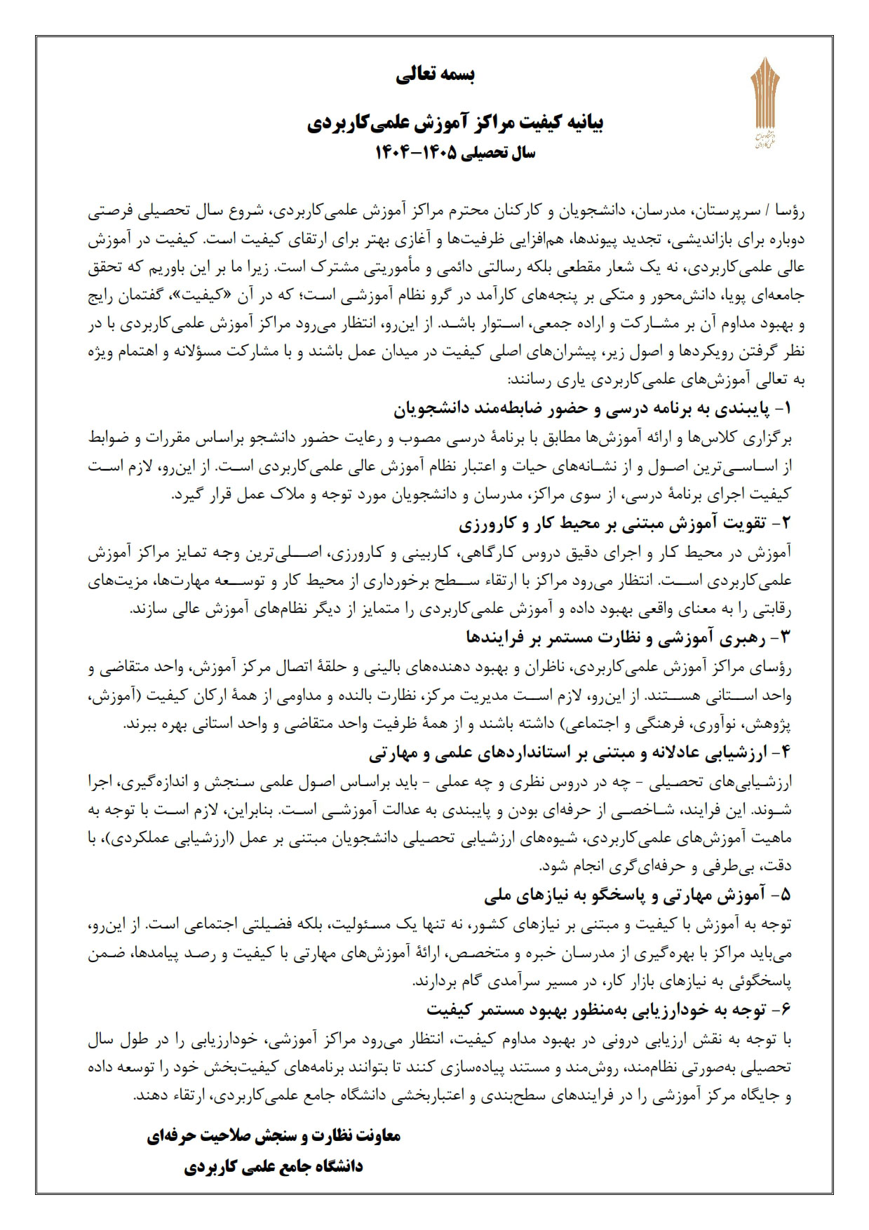 بیانیه کیفیت مراکز آموزش علمیکاربردی سال تحصیلی ۱۴۰۵-۱۴۰۴ ۱۲ مهر ۱۴۰۴ | ۰۷:۲۷ کد : ۸۲۲۶۱ از میان خبر ها اخبار مرکز ارسال به دیگران نام شما ایمیل شما ایمیل دریافتکننده ارسال انصراف تعداد بازدید:۱۱۶