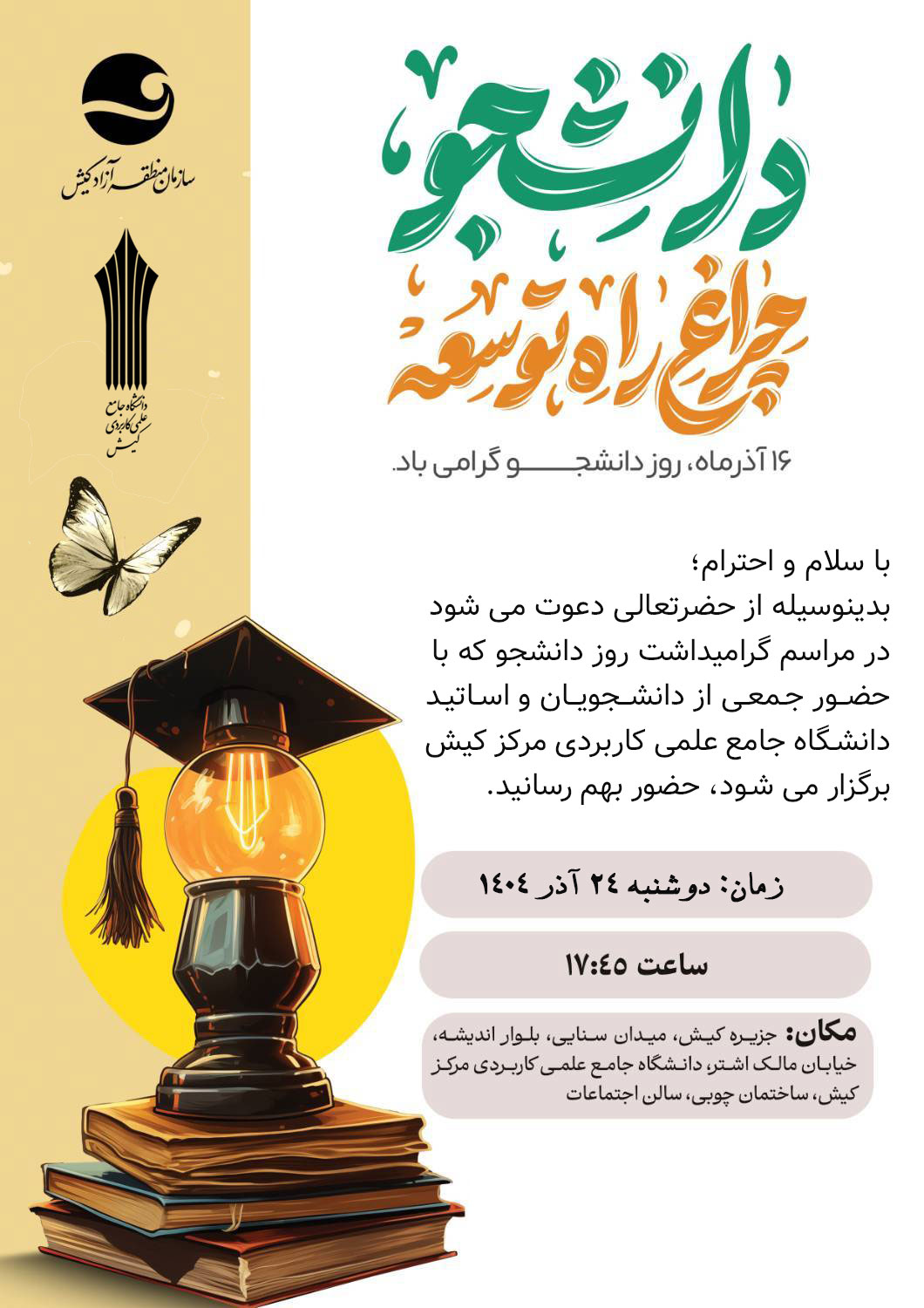 از شما دعوت می شود در مراسم گرامیداشت روز دانشجو شرکت نمایید